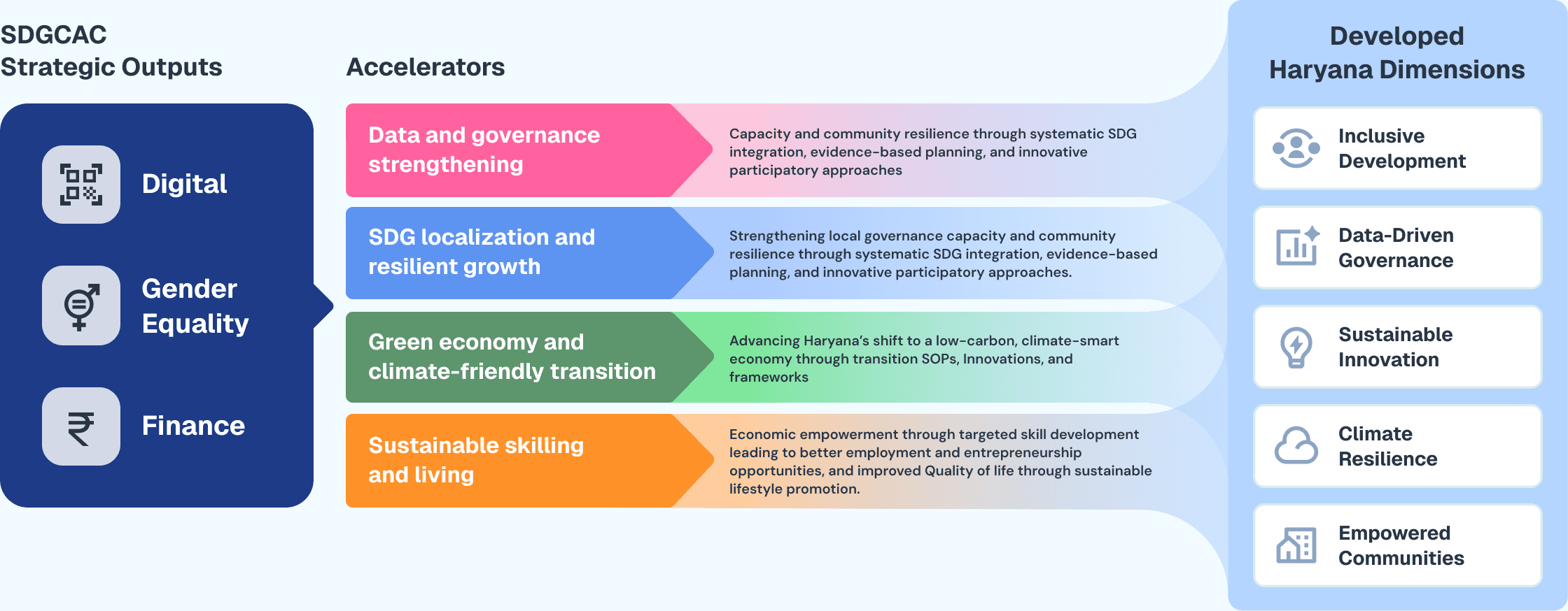 SDGCAC operates at three interconnected levels to ensure that sustainability reaches every citizen, from state policy to local action.